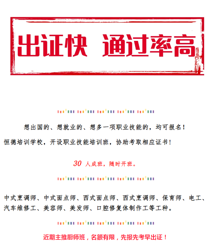 版權所有:山東恒德國際經濟技術合作有限公司 威海恒德職業培訓學校 地址:威海市高區火炬路153號-A  免費熱線:4006150009